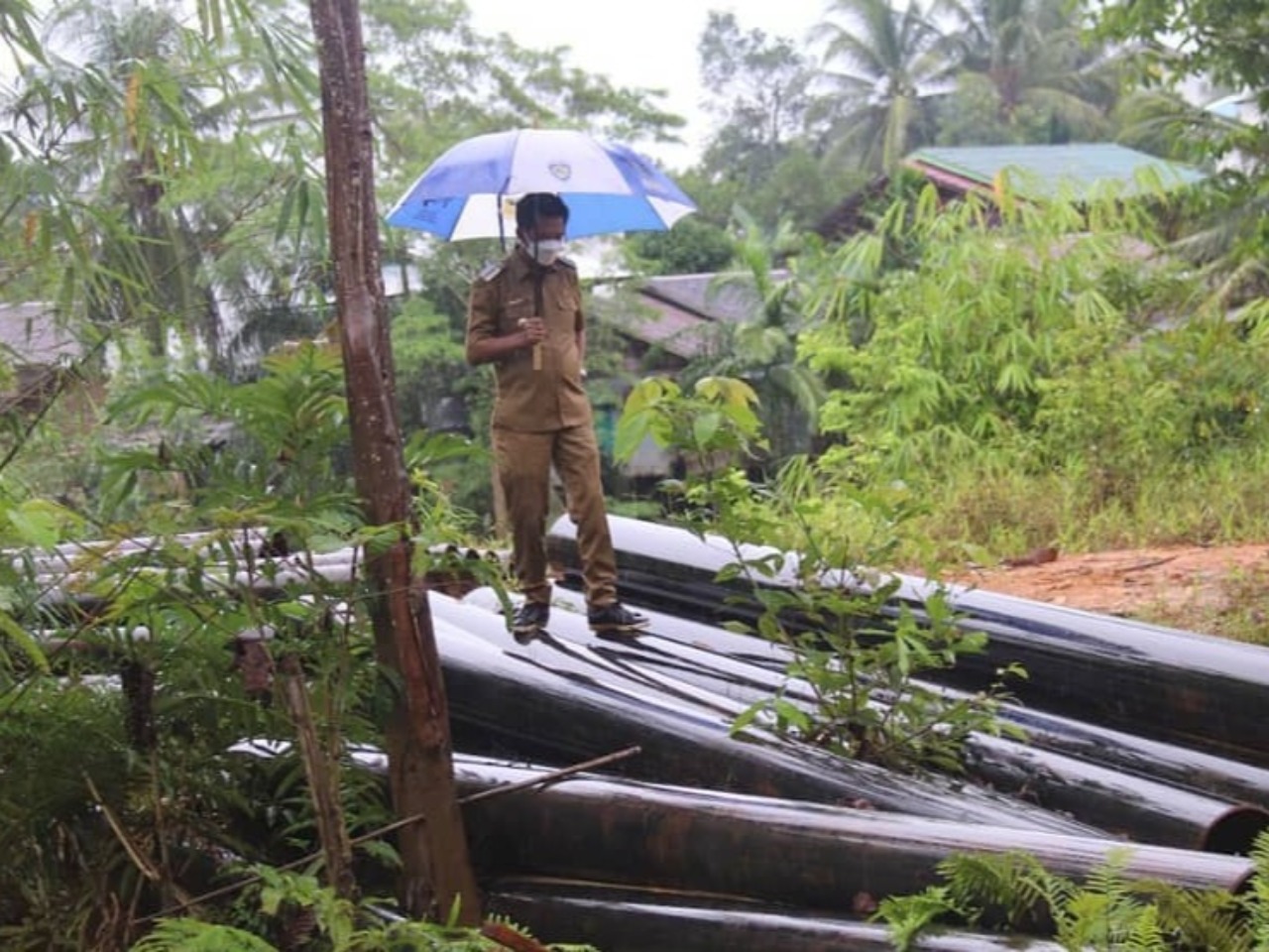 Sungai Teweh dan tiang pancang telah ada. Bupati meminta kepada pekerja agar