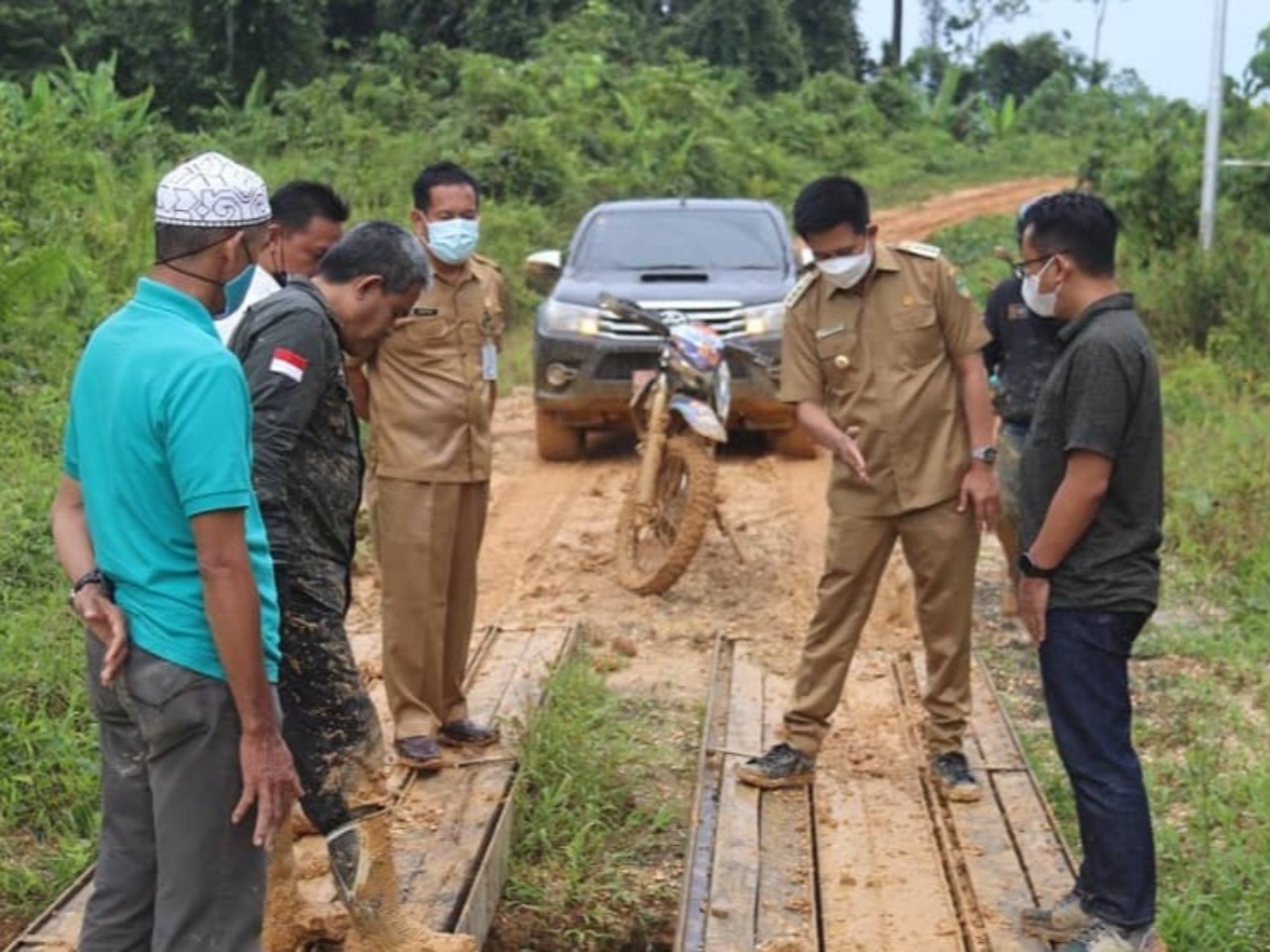 jembatan gantung, Bupati dan rombongan melihat jembatan yang ada di sepanjang